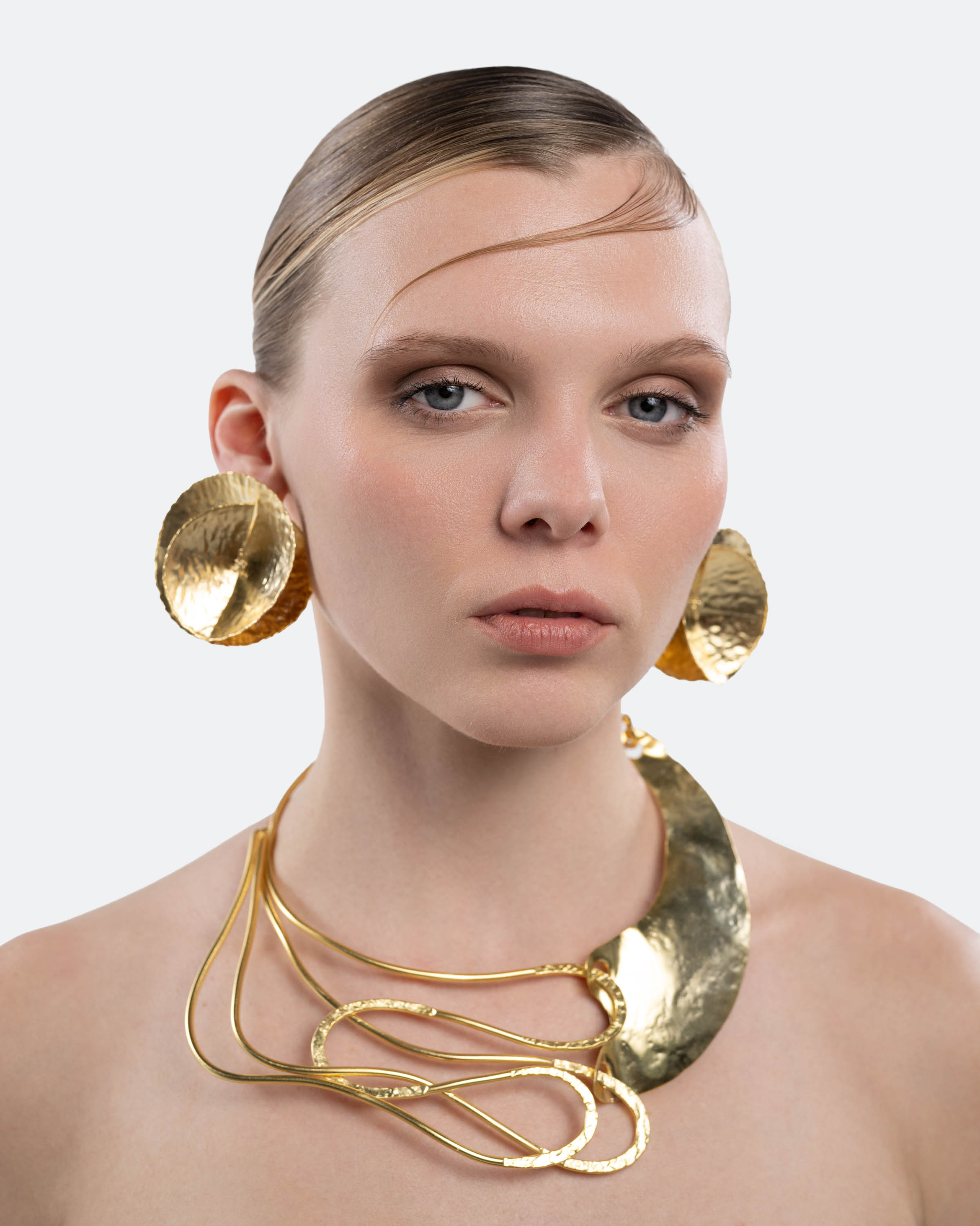 Accessories are developed alongside the garments, handcrafted and gold-plated to sit close to the body and complete the form.